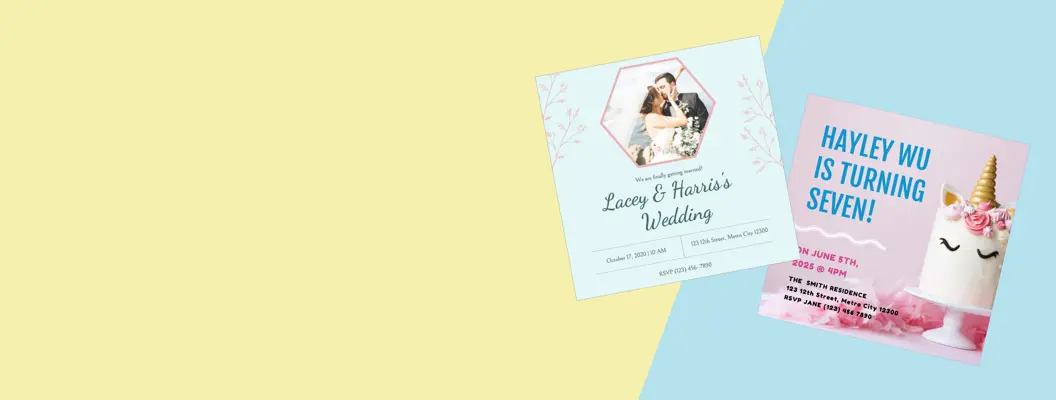 Need an exciting invitation card for your event? Create a stunning invitation effortlessly with thousands of invitation templates available for you in Designs.ai. You can edit the invitation template easily to personalize and add your flair to wow your guests.